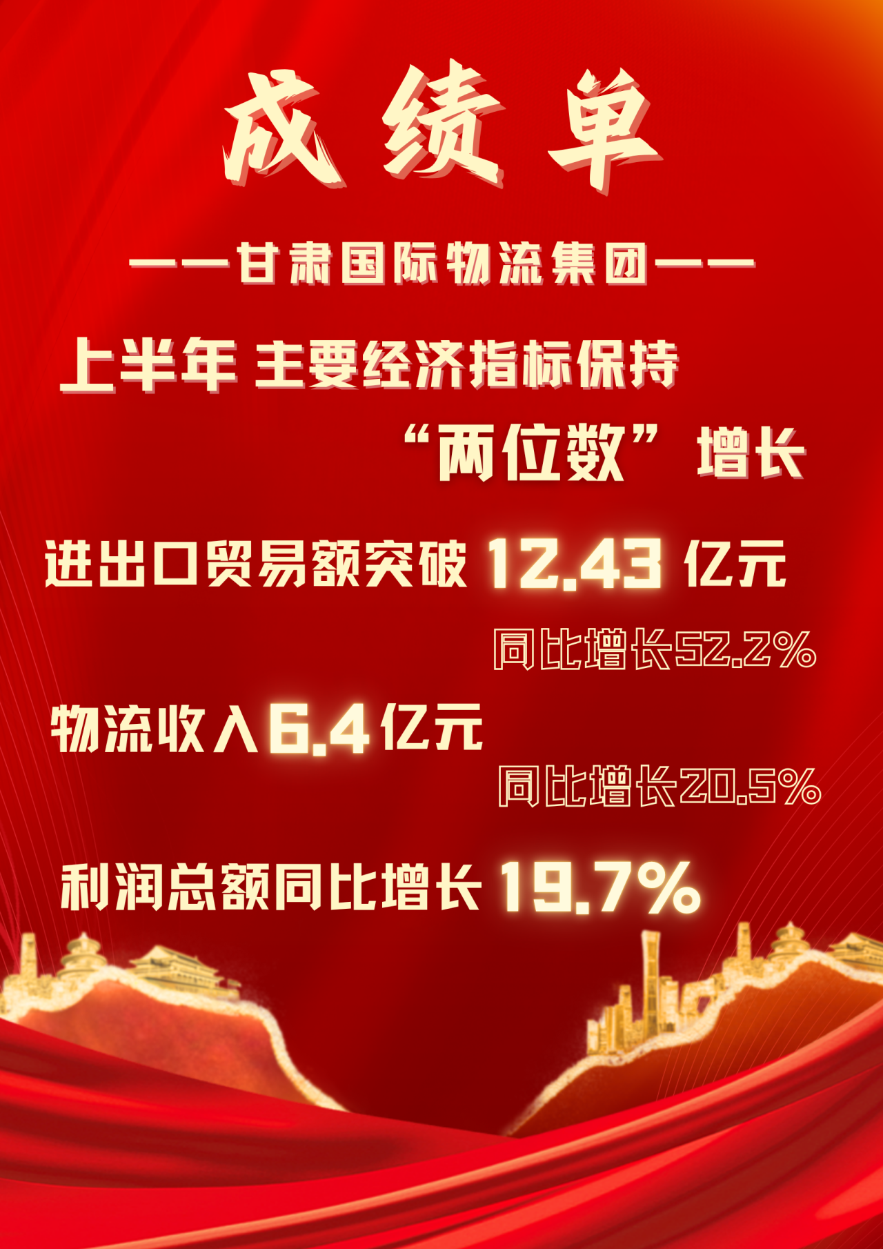 今年以來,甘肅國際物流集團以“雙循環(huán)”戰(zhàn)略為引領,深耕“國際國內兩個市場”,全面激活改革動能,釋放發(fā)展?jié)摿?。堅持黨建引領,強化創(chuàng)新驅動,在穩(wěn)增長中育新機,在暢通道中開新局,在擴外貿(mào)中謀新篇,在促合作中創(chuàng)新績,以奮進姿態(tài)跑出高質量發(fā)展“加速度”。上半年主要經(jīng)濟指標保持“兩位數(shù)”增長,展現(xiàn)出良好的發(fā)展勢頭,進出口貿(mào)易額突破12.43億元,同比增長52.2%;物流收入6.4億元,同比增長20.5%;利潤總額同比增長19.7%。