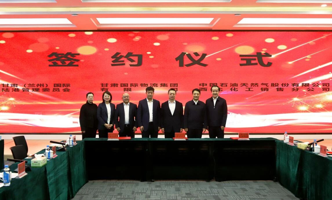 甘肅國(guó)際物流集團(tuán)黨委書記、董事長(zhǎng)張鐵強(qiáng),中國(guó)石油西北化工銷售公司黨委書記、執(zhí)行董事李寶平,甘肅(蘭州)國(guó)際陸港黨工委書記趙同慶出席座談和協(xié)議簽訂儀式。