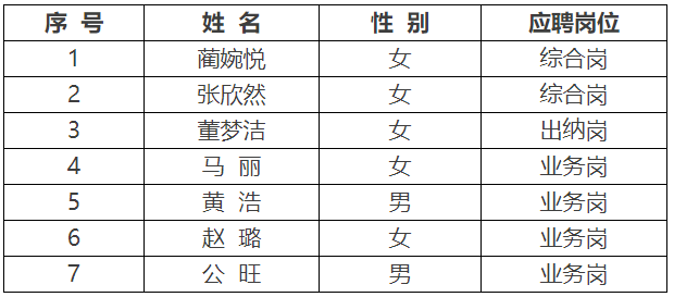 按照《甘肅省國際物流集團(tuán)酒泉有限公司2024年人員招聘工作方案》,經(jīng)發(fā)布公告、網(wǎng)上報(bào)名、資格審查、筆試、面試等程序,現(xiàn)將擬聘用的7名人員進(jìn)行公示,公示期間接受社會(huì)各界監(jiān)督。如有異議,可通過電話、來信、短信、面談等形式反映情況,我們將認(rèn)真進(jìn)行受理,并向署名或當(dāng)面反映問題的人員及時(shí)反饋調(diào)查核實(shí)結(jié)果。
